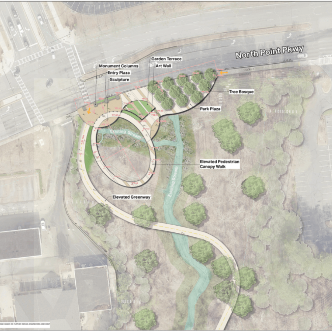 This 12-foot-wide path and pocket park will link the Alpha Loop and Big Creek Greenway, creating a vibrant, connected space near Encore and North Point Parkways. Encore Greenway will enhance North Point as a top destination for developers, businesses, residents, and visitors.